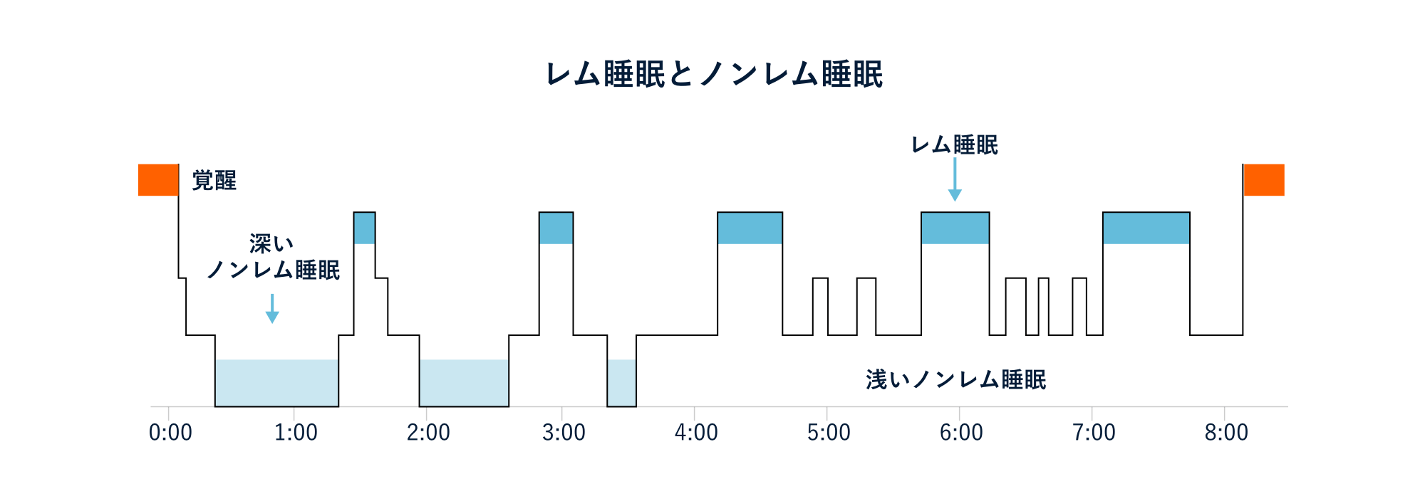 睡眠中のレム睡眠とノンレム睡眠により、私たちの脳と体はリフレッシュされています。ノンレム睡眠とレム睡眠からなる90~120分のサイクルを4、5回繰り返すことのできる6時間~8時間というのが、最適な睡眠時間の1つの目安となるかもしれません2)。