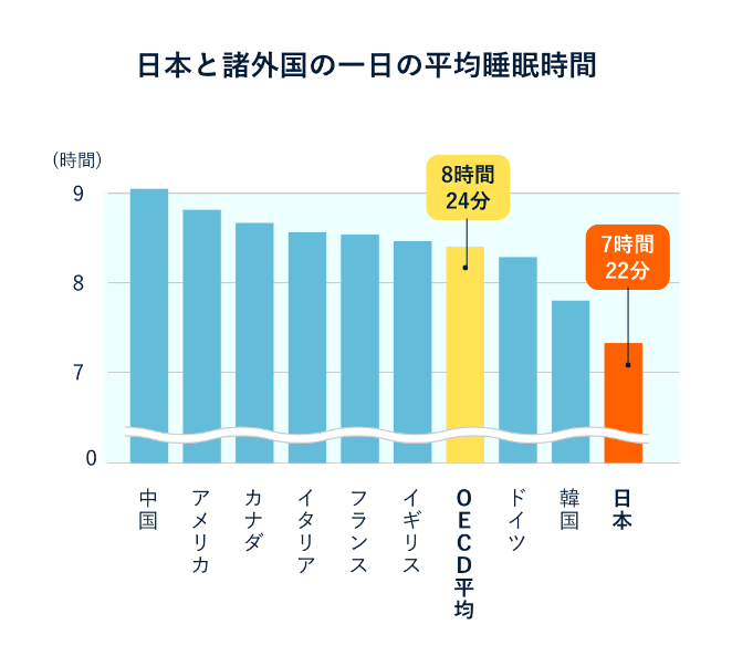 ⽇本の睡眠の現状 世界⼀短い⽇本の睡眠時間